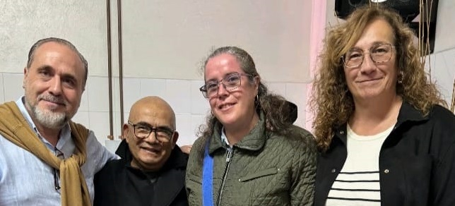 El pastor Miguel Mate, su mentor espiritual en REMAR, Jorge Abel Ribera, su esposa Beatriz y Naty Mate. |